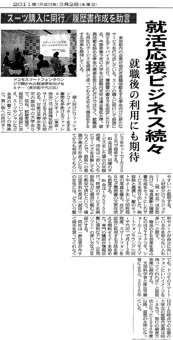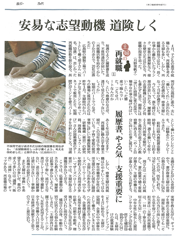 フジサンケイビジネスアイ informarion catch に「ミドルエイジ女性の雇用」についての記事が掲載されました。
