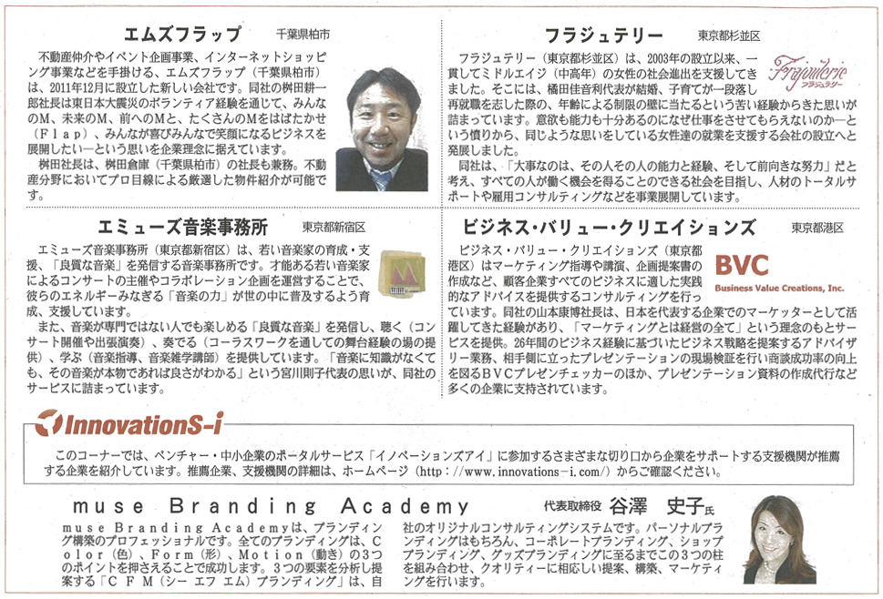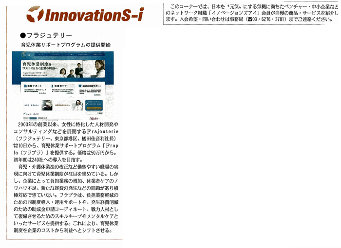 イノベーションズアイのHPに新聞掲載情報として掲載されました。 →詳細はこちら