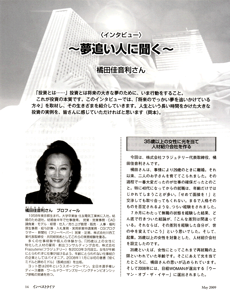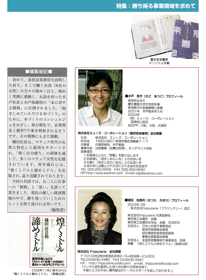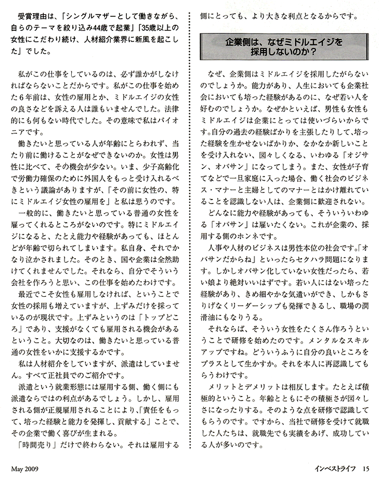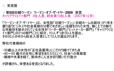 「ウーマンオブザイヤー2008」受賞の際の記事が掲載されました。