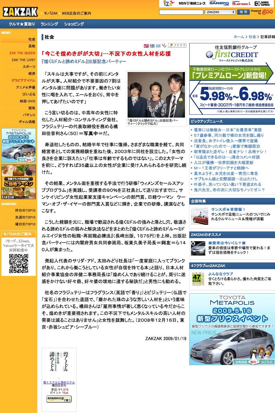 日経WOMANサイト掲載 ピープル 2008年6月9日より